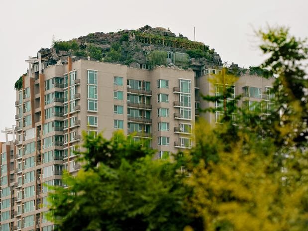 O "oásis na cobertura", como chamaram alguns veículos chineses, fica no topo de um dos blocos de apartamentos ao lado do Parque do Bambu, um dos mais populares da capital chinesa.